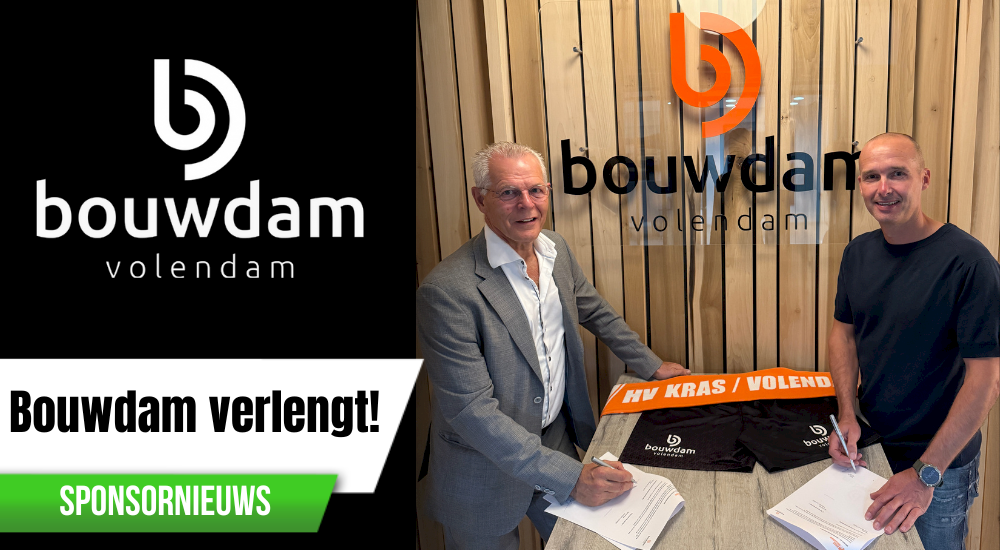 HV KRAS/Volendam is trots om te kunnen melden dat Bouwdam haar samenwerking met onze vereniging heeft verlengd én uitgebreid. De komende drie seizoenen blijft Bouwdam betrokken bij onze mooie club. Bovendien is Bouwdam toegetreden tot de Gold Sponsors van HV KRAS/Volendam, met onder andere een prominente plek op het wedstrijdbroekje van Heren 1.