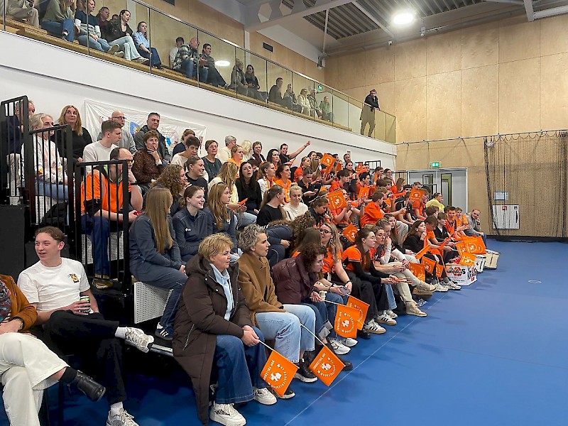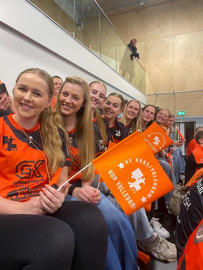 De halve finale van de beker tegen VOC Amsterdam werd niet alleen op het veld een strijd, maar ook op de tribunes. Met een recordaantal meegereisde supporters kleurde HV KRAS/Volendam de sporthal in Amsterdam volledig oranje. Trommels, vlaggen, sjaals en gezang zorgden voor een sfeer die recht deed aan het moment: een historische halve finaleplaats voor onze dames.