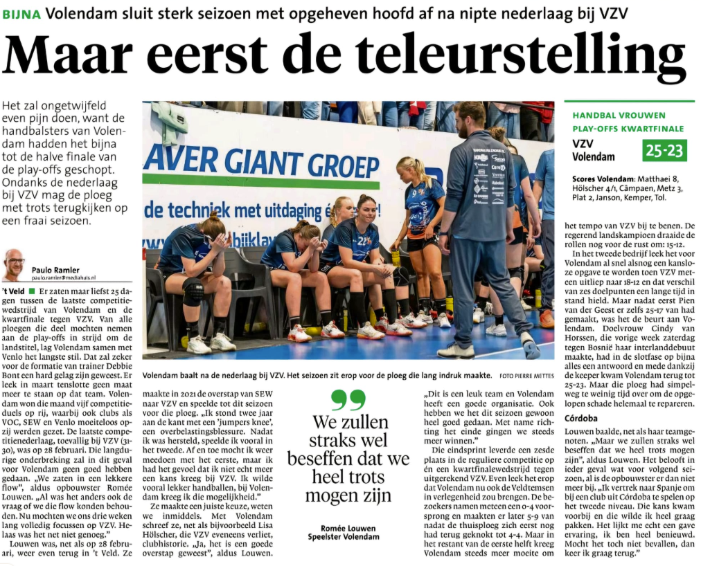 Met het einde van het seizoen komt er ook beweging in de selectie. Zo vertrekt Romée Louwen naar Spanje, waar zij haar handbalcarrière voortzet op een nieuw niveau. Een prachtige stap, die past bij de ontwikkeling die zij bij Volendam heeft doorgemaakt.