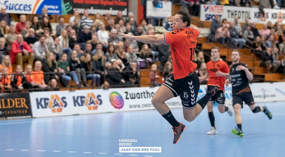 HV KRAS/Volendam boekte zondagmiddag een belangrijke overwinning op JD Techniek Hurry-Up. In een spannende wedstrijd stelden de Volendammers in de slotfase de overwinning veilig: 32-31.