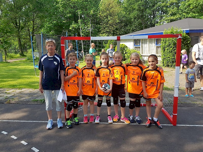 Het was een zonovergoten dag afgelopen zaterdag, en omdat zowat half Volendam met vakantie ging, én Wick Beemsterboer pijnlijk door zijn enkel was gegaan, hadden we wat tijgers/kabouters van 5 en 6 jaar oud meegenomen om de ploegen compleet te maken en dat bleek een gouden greep. Met de mouwen opgestroopt werden zij de smaakmakers van de dag met goede acties en af en toe zelfs een doelpuntje meepakkend. KRAS/Volendam 1 opende tegen het sterke Legmeervogels en de oranje talenten hadden weinig in te brengen tegen de veel grotere meiden. Keepster Marit Goede hield de schade nog enigszins beperkt maar de pogingen van Jip Tuijp, Carice v.h.Hull, Julia Klinkenberg, Aislyn Huibers en Suze Smit kwamen niet verder dan de keeper van de tegenpartij. Snel vergeten dus maar. In de tweede wedstrijd stond het sterke Havas te trappelen en ook nu leek KRAS/Volendam niet opgewassen tegen het snelle spel met een 0-3 achterstand als resultaat. Coach Gaar nam een time/out en zette alle neuzen even dezelfde kant op met als resultaat een inhaalslag van jewelste. Keepster Marit keepte als een dijk en via doelpunten van Aislyn Huibers, Jip Tijp en Julia Klinkenberg kwam Oranje eerst langszij 3-3 en even later zelfs op voorsprong. Havas zette nog een keer aan maar mede door het goede verdedigen van Suze Smit en Carice v.h.Hull werd de eindstand 6-6 en dat was dikverdiend. In de laatste partij werd DSG de tegenstander en bleken de KRAS/Volendam-handen goed opgewarmd want het werd al snel duidelijk dat deze punten in de oranje tas mee naar huis zouden gaan. Hoewel Carice en Suze hun schoten nét naast zagen gaan, verdwenen de pogingen van Jip Tuijp, Julia Klinkenberg en Aislyn Huibers snoeihard achter de DSG keepster waardoor de laatste wedstrijd ruim werd gewonnen met 7-3.